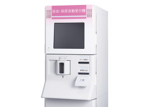 受付業務を自動化し、患者さま対応を強化。上位システムのオーダー内容に従い、尿カップや整理券を発行。受付担当者が行っていた受付や尿カップ、整理券の手渡しを自動化します。